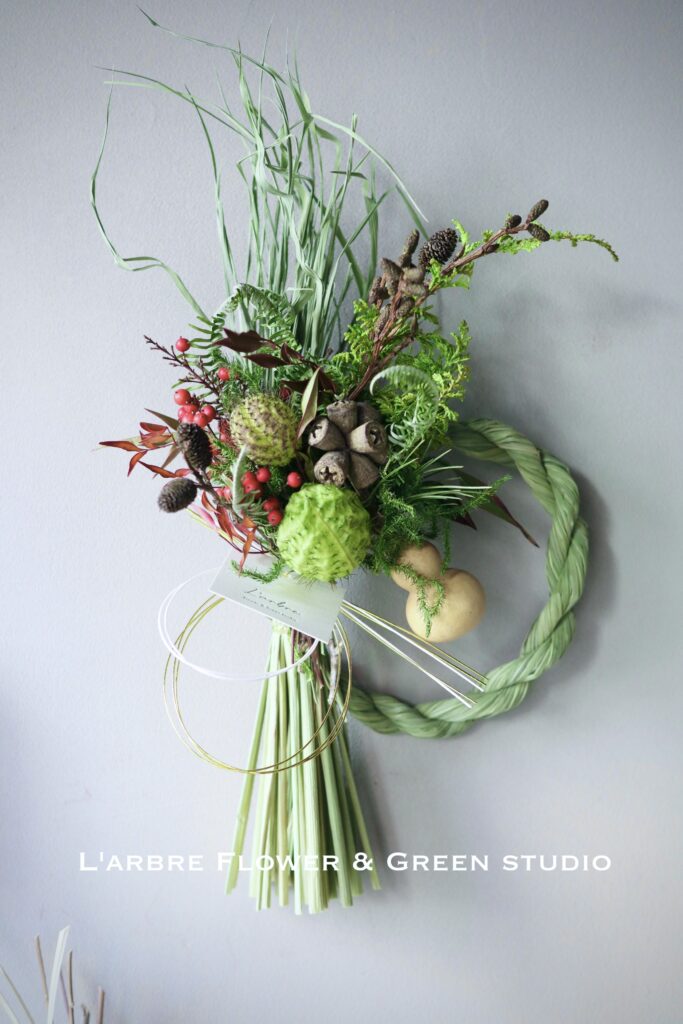 お正月に飾るしめ縄飾り。国産青稲を編むところからはじめます。お正月が終わった後もしめ縄部分を外し、スワッグとして飾れるL'arbre定番のお正月飾りになります。スワッグ部分の花材は数種類の中から選んでいただけます。(インスタグラムの2024年12月の投稿を見ると昨年皆様が作られた作品が見られますのでご参考にしてください)初心者の方でも楽しめる簡単なレッスンです。写真は見本になりますので花材はその時々変わりますことをご了承ください。